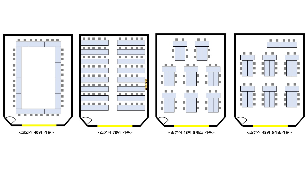 - 회의실 내 외부 음식 반입, 가무 및 음주는 일체 금지하며 불응 시에는 퇴장 조치 될 수 있습니다.